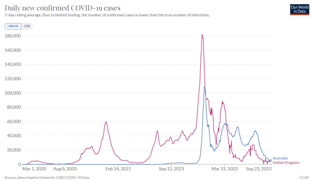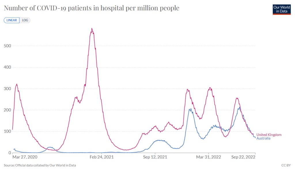 In the meantime, similar problems were seen in Australia. By October 2021, Mark McGowan, Premier of Western Australia put it, in October 2021, “Our hospitals are under enormous pressure. This has been something no-one has ever seen before. Why it is, is hard to know.” Despite it being springtime in Australia headlines reported on ambulances unable to drop off patients in hospitals that were at capacity and calls were made for more data to explain the mystery. At the same time hospitals were overwhelmed in the USA and in the UK.